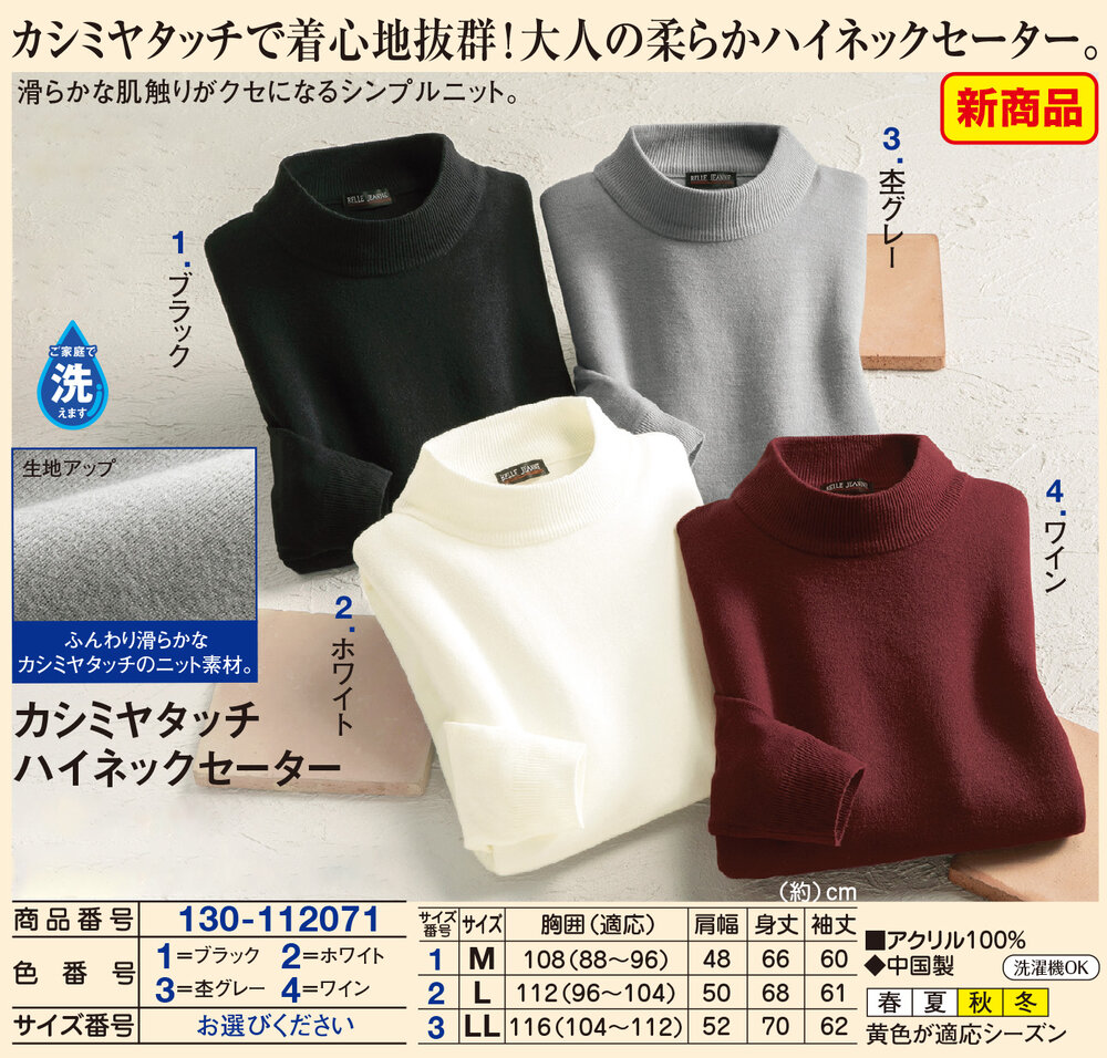 カシミヤタッチで着心地抜群!大人の柔らかハイネックセーター!