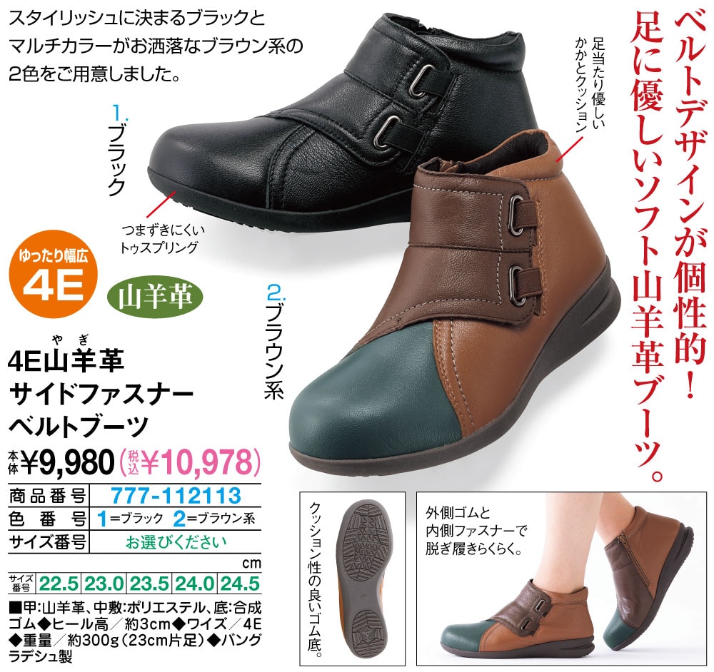 ベルトデザインが個性的!足に優しいソフト山羊革ブーツ!