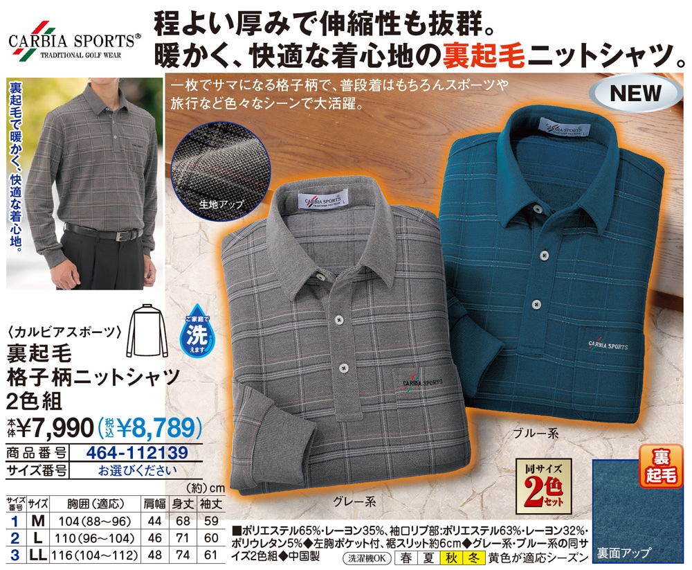 程よい厚みで伸縮性も抜群。 暖かく、快適な着心地の裏起毛ニットシャツ 一枚でサマになる格子柄で、普段着はもちろんスポーツや旅行など色々なシーンで大活躍。 裏起毛で暖かく、快適な着心地。 同サイズ2色セット
