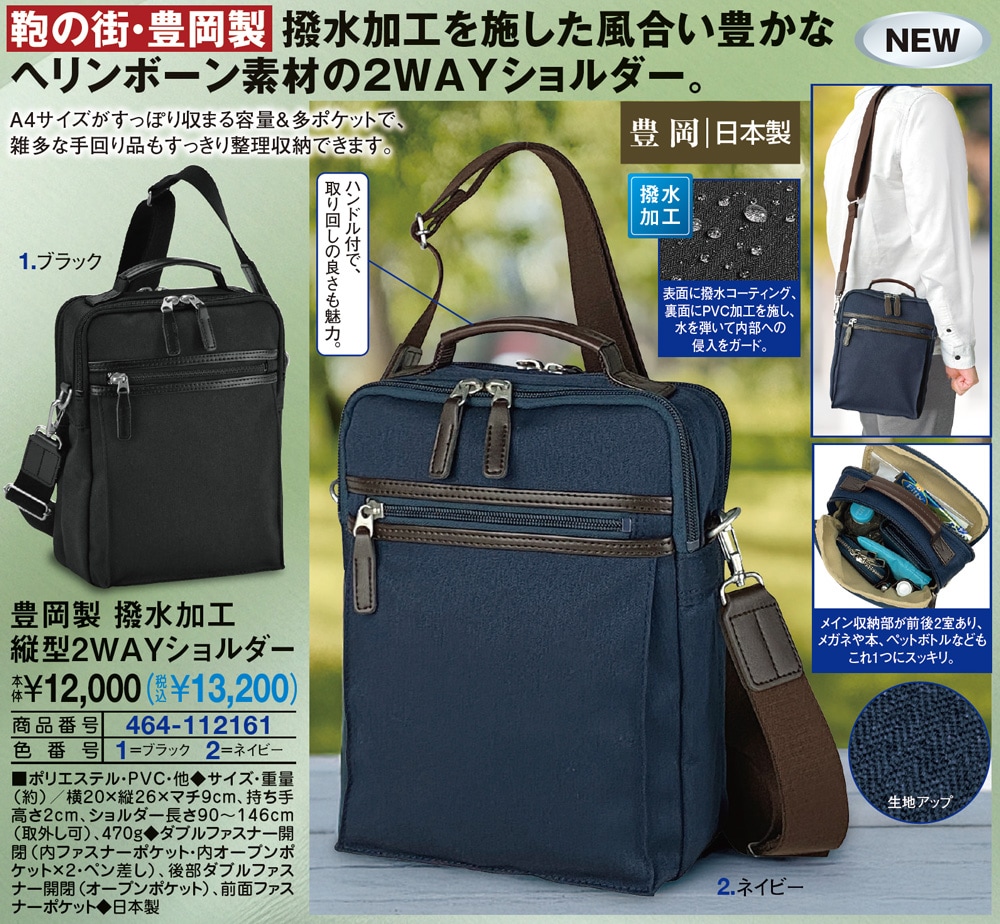 豊岡製 撥水加工縦型2WAYショルダー