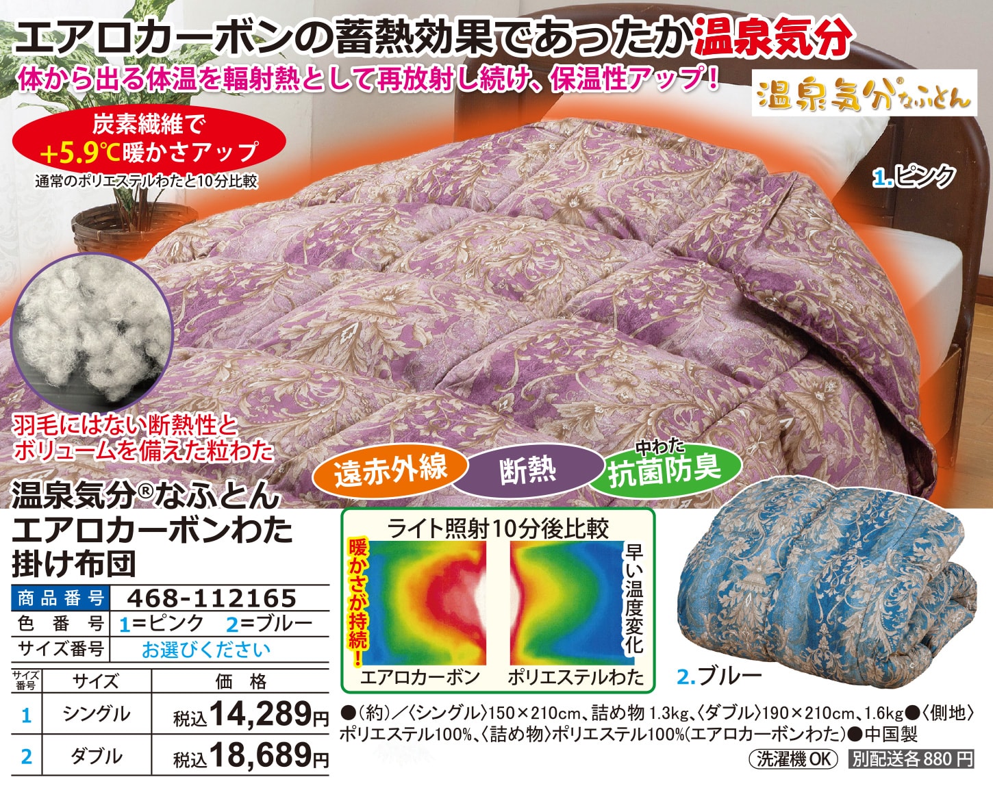 ●<側地>ポリエステル100%、<詰め物>ポリエステル100%(エアロカーボンわた)