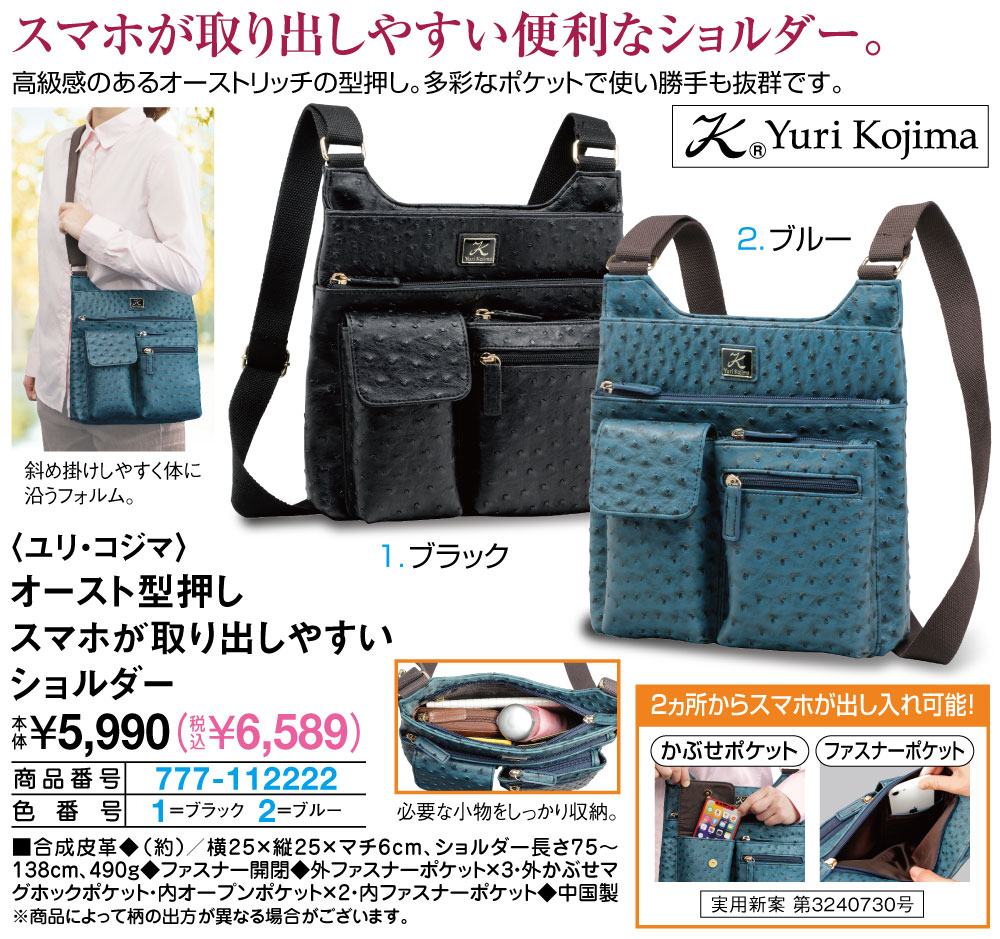 ユリ・コジマ オースト型押しスマホが取り出しやすいショルダー