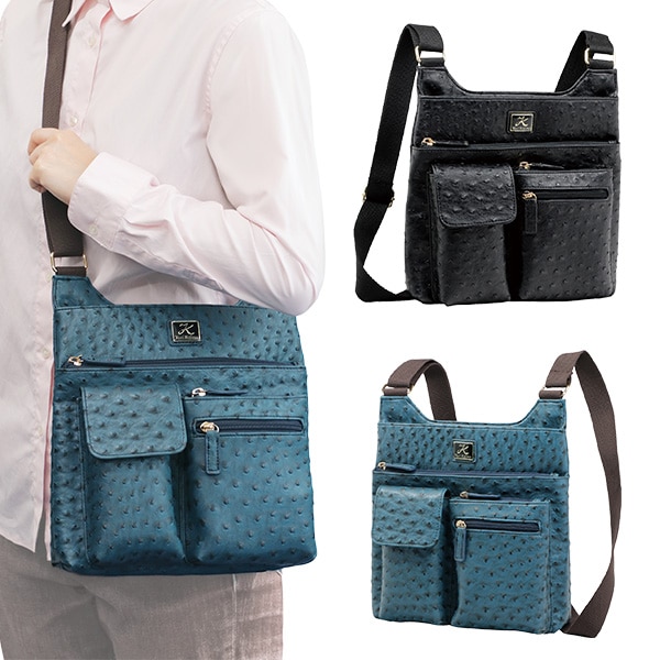 高級感のあるオーストリッチの型押し。多彩なポケットで使い勝手も抜群です。