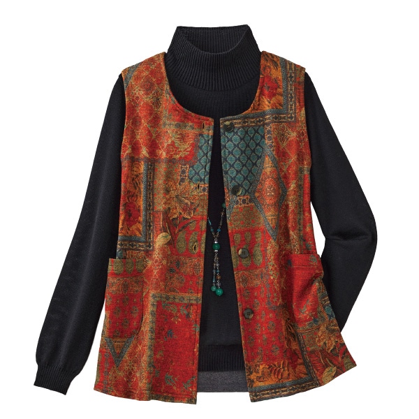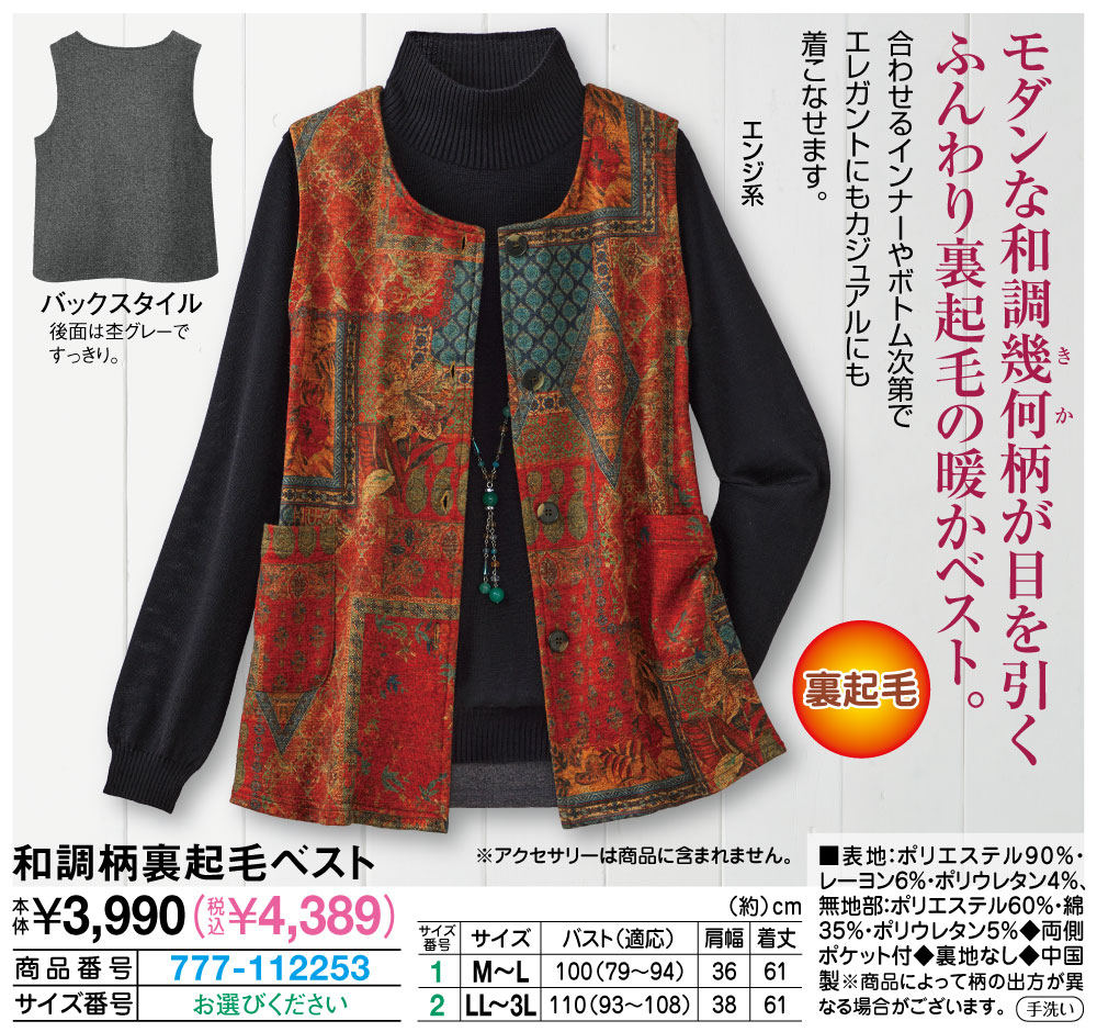 モダンな和調幾何柄が目を引くふんわり裏起毛の暖かベスト!