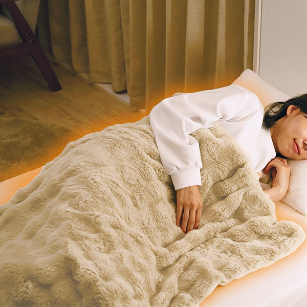 とろけるような肌ざわりのあったか電気毛布! 敷き毛布として、掛け毛布として ひざ掛けや寝具としていろいろなシーンで活躍! 毛足の長い厚みのある生地で保温性アップ! Lサイズは体をすっぽり包み、全身あたたまる! ふんわり包み込まれて夜もぐっすり♪ ●電気代 最大約1.8円(1時間あたり) ※メーカー調べ ●ダニ対策機能 ●無段階温度調節(弱約35度~強約50度) ●手元コントローラー