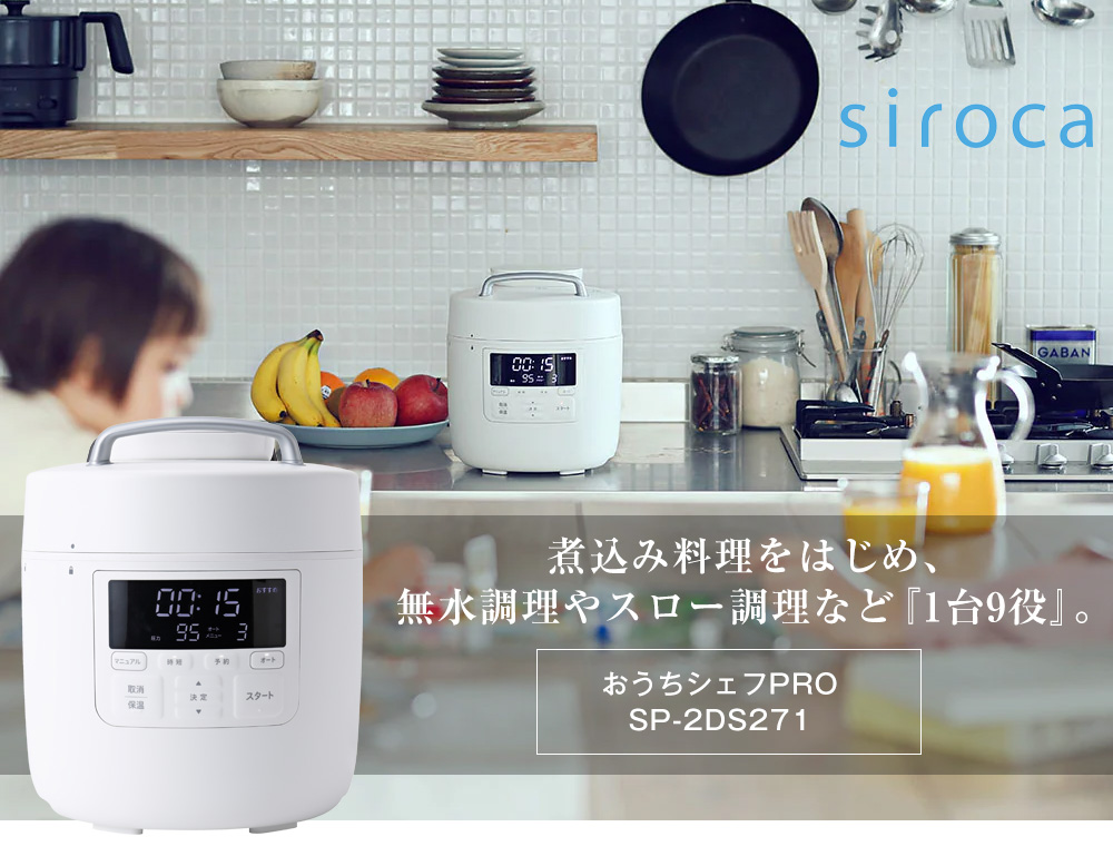 【サイズ(約)】幅24奥行26高さ27cm・重さ3.9kg 【素材】ポリプロピレン、ABS樹脂、シリコン、アルミニウムなど 【圧力調理は1.68L、豆類は650ml、炊飯は0.5~3合まで可能 【消費電力700W 【コード長さ1.2m 【おすすめ自動メニュー20品・プリセットメニュー56品内蔵 【11段階の圧力値のマニュアル設定が可能 【保温時間最大12時間(炊飯時) 【型番】SP-2DS271 ◎中国製