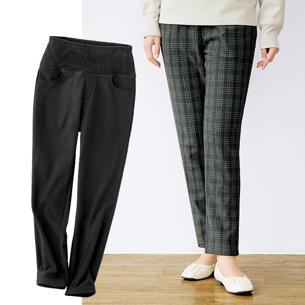じつは、お腹からぽかぽかこっそり楽ちん・美脚パンツ! 光を吸収して発熱する生地を使用。さらにお腹部分に腹巻が付いて、寒い日も暖かく過ごせます。 すっきり美脚&こっそり暖か。 腹巻付でぬくぬく! ●ヨコストレッチ ●同サイズ2色セット ●裏起毛