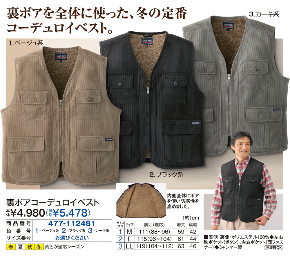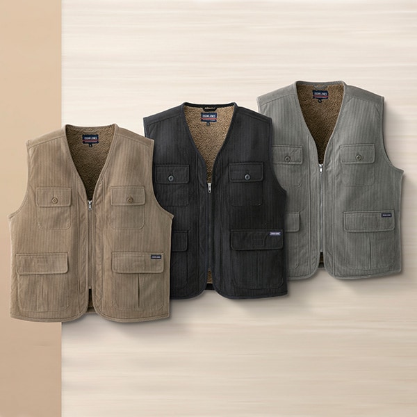 裏ボアを全体に使った、冬の定番コーデュロイベスト