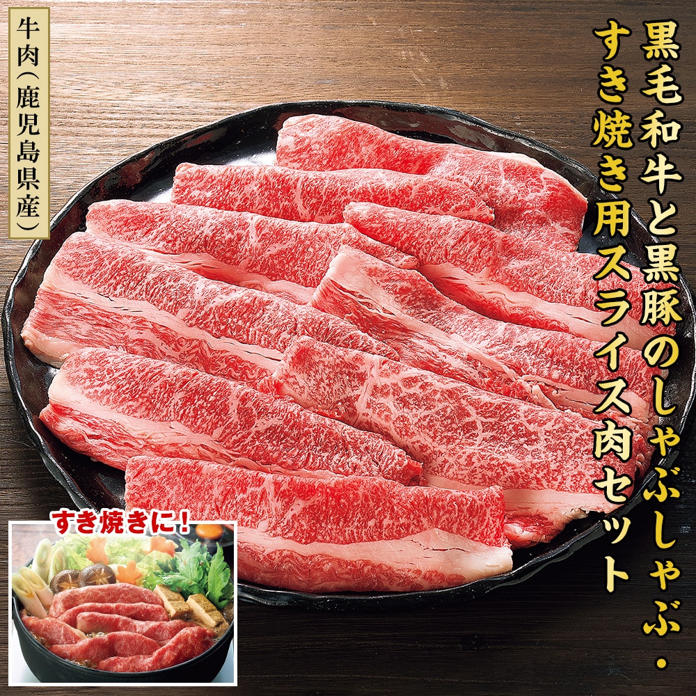 【牛肉(鹿児島県産)】【豚肉(鹿児島県産)】 「全国和牛能力共進会」で総合優勝!2大会連続で「日本一」に輝いた黒毛和牛「鹿児島黒牛」1.5㎜スライス肉と高級黒豚、「鹿児島県産黒豚」のスライス肉のセット。