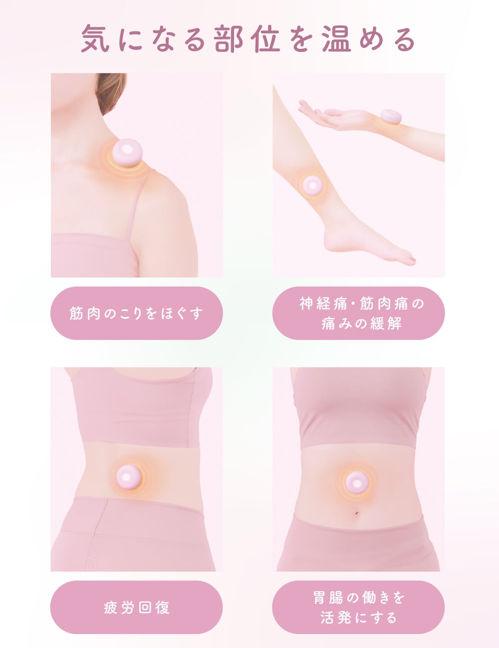 プチ不調に火を使わずに繰り返し使えるデジタルお灸♪ ボタン一つで 手軽に気になる部位を温めて血行をよくします。 速暖の秘密は、温灸に採用した「グラフェン」素材。 厚さわずか0.1ミリの超薄型で軽量、その上、銀や銅を超える熱伝導性により素早く体を温め、心地よい温もりを提供します。 「温灸プチ」は管理医療機器として認証! 【効果効能】 疲労回復、血行を良くする、筋肉の疲れをとる、筋肉のこりをほぐす、神経痛・筋肉痛の痛みの緩解、胃腸の働きを活発にする こんな方におすすめ! ◎体が冷えやすくて、疲れやすい ◎家でも外出先でも手軽に温めたい ◎自分時間に、贅沢な癒しが欲しい ◎特別な人に“温もり”を贈りたい
