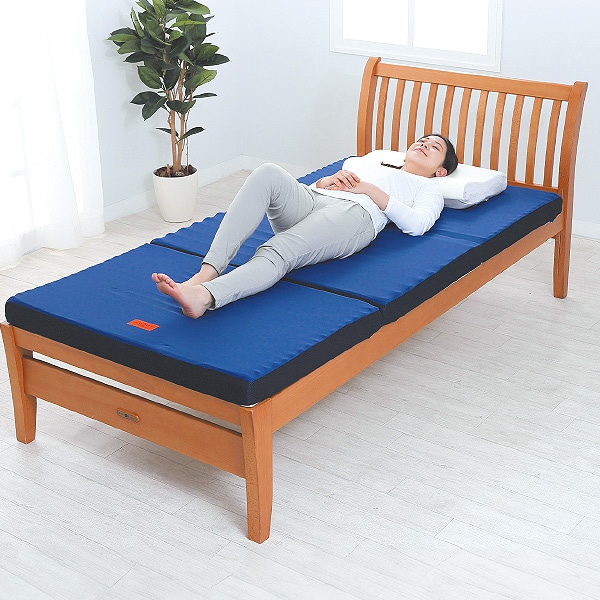 ●1枚でベッドでもフローリングでも、お使いいただけます。 ●ウェーブ加工を施すことで通気性に配慮。 ●側生地のマチ、裏生地には通気性の良いメッシュ生地を使用しています。 側生地は、取り外して洗濯可能。 ●頭・足元部分と腰部分のウェーブ幅を変えることで、体になじむ設計。 ●マットレスは畳んで、コンパクトに収納