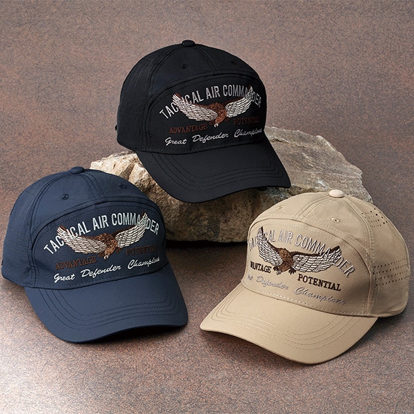 勇壮なイーグルの刺しゅうが目を引くミリタリーテイストのアポロキャップ!