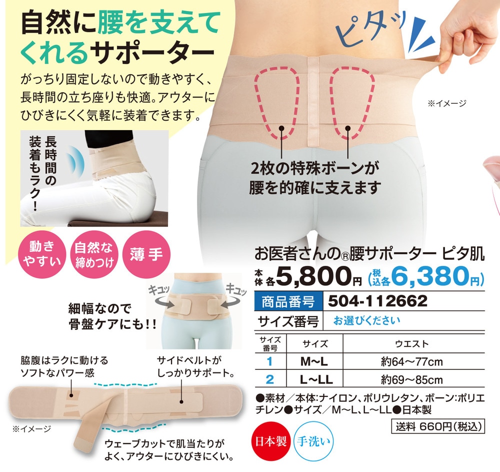 ●がっちり固定しないので動きやすく、長時間の立ち座りも快適。アウターにひびきにくく気軽に装着できます。 ●長時間の装着もラク! ●2枚の特殊ボーンが腰を的確に支えます ●動きやすい ●自然な締めつけ ●薄手 ●細幅なので骨盤ケアにも!!