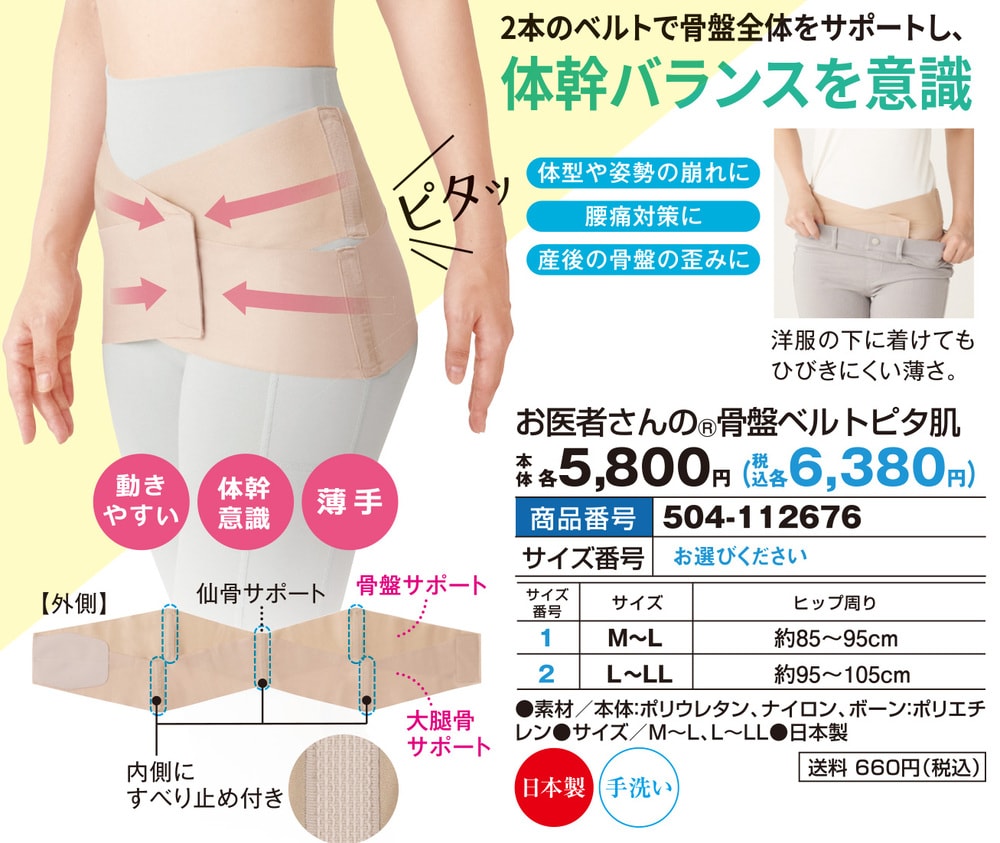 ●体型や姿勢の崩れに ●腰痛対策に ●産後の骨盤の歪みに ●洋服の下に着けてもひびきにくい薄さ。 ●動きやすい ●体幹意識 ●薄手