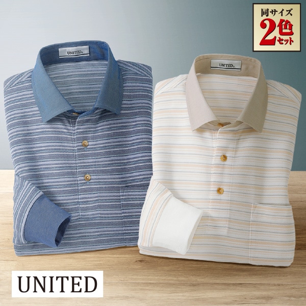 ●ポリエステル80%・綿20%、袖口部:ポリエステル80%・綿17%・ポリウレタン3%、襟部:綿100% ◆左胸ポケット付、裾スリットなし ◆ネイビー系・ベージュ系の同サイズ2色組 ◆ミャンマー製