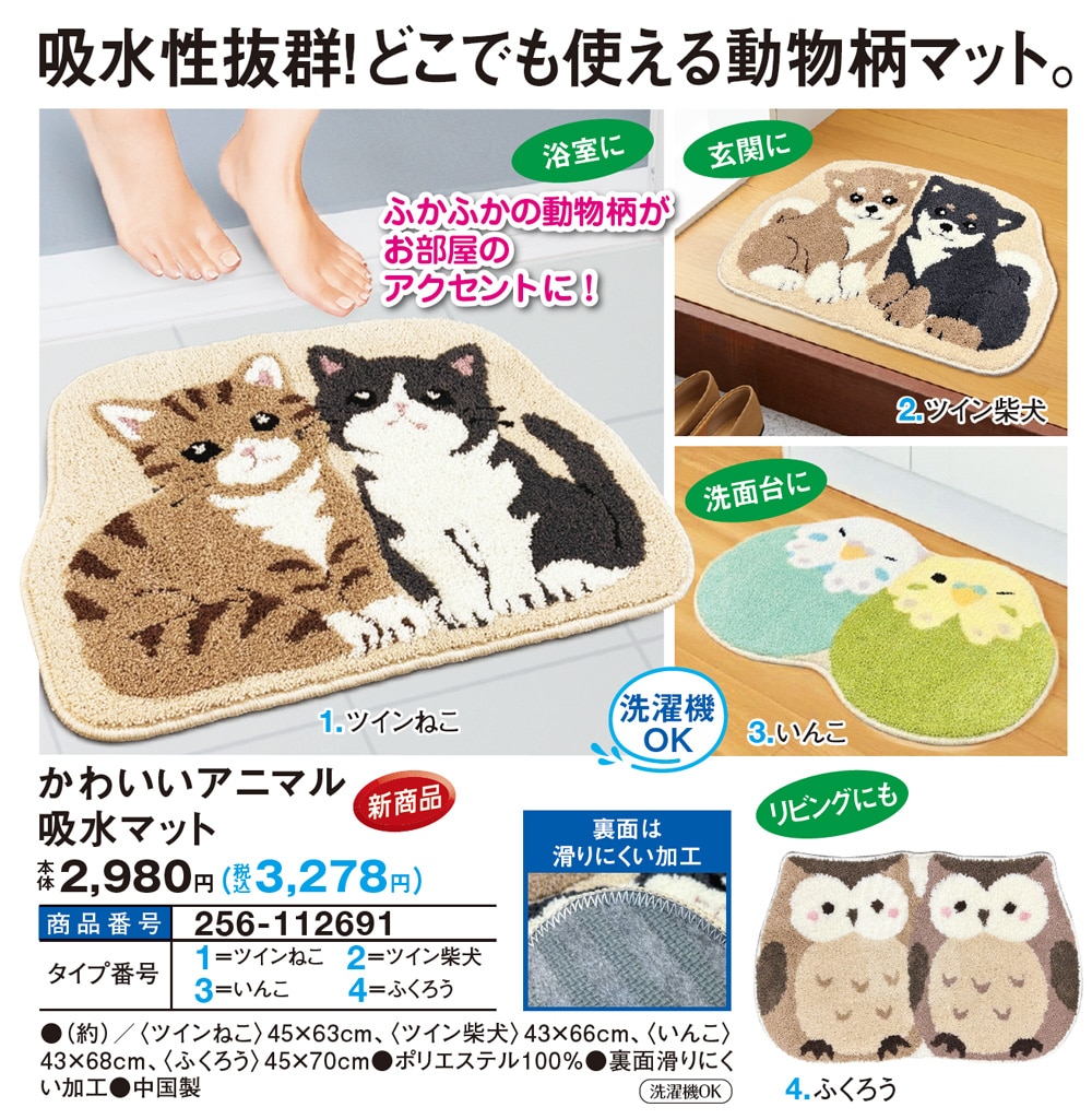 ●(約)/<ツインねこ>45×63cm、<ツイン柴犬>43×66cm、<いんこ>43×68cm、<ふくろう>45×70cm ●ポリエステル100% ●裏面滑りにくい加工 ●中国製
