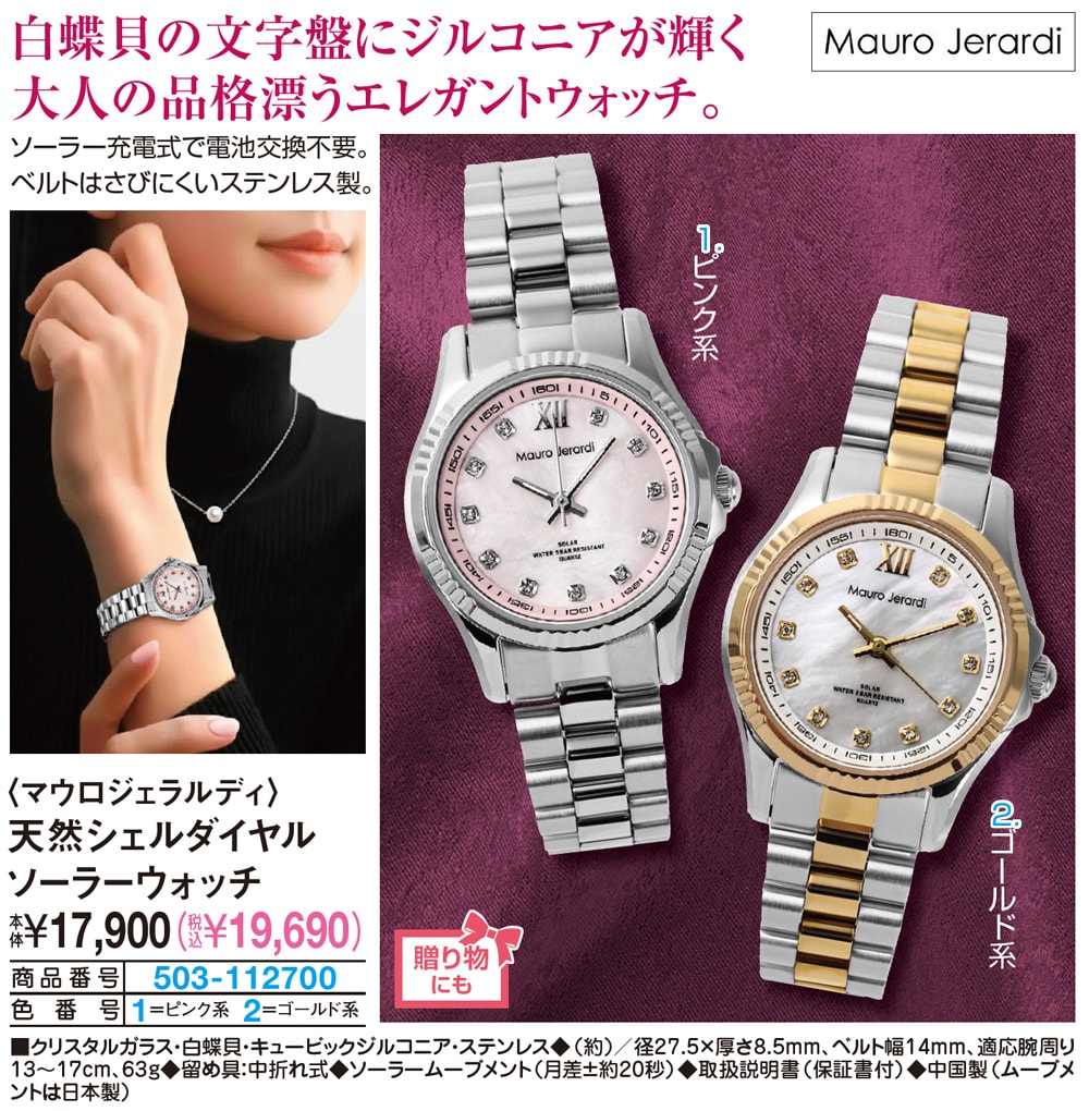 マウロジェラルディ 天然シェルダイヤルソーラーウォッチ