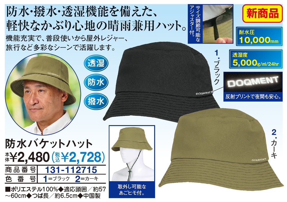 防水・撥水・透湿機能を備えた、軽快なかぶり心地のハット!