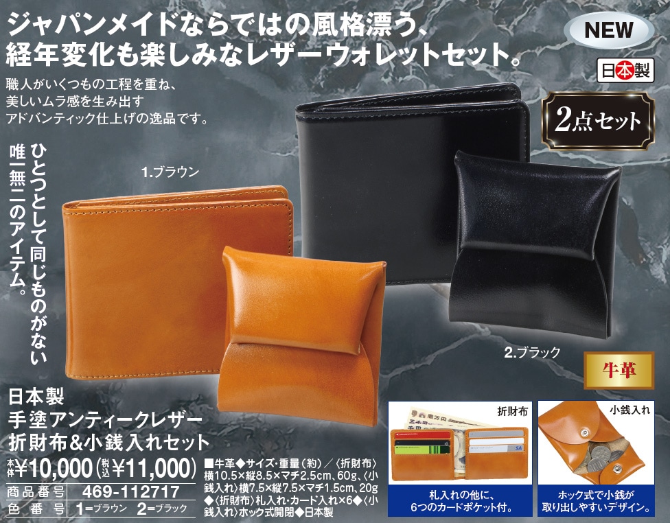 日本製 手塗アンティークレザー 折財布&小銭入れセット