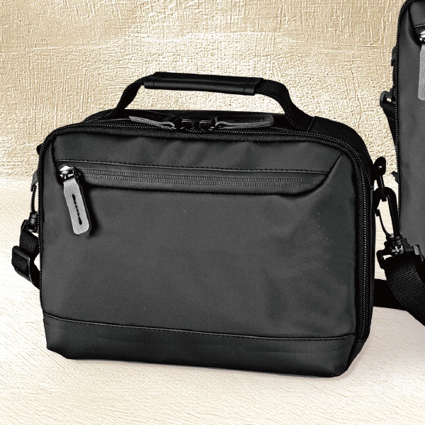 ●ポリエステル(PVCコーティング) ◆サイズ・重量(約)/縦型:横20×縦25×マチ8cm、280g、横型:横24×縦18×マチ8cm、270g<共通>ショルダー長さ77~138cm(取外し可)、持ち手高さ4cm ◆<共通>ダブルファスナー開閉、前面ファスナーポケット(内オープンポケット・縦型:内ペン差し・横型:内ペン差し×2)・内ファスナーポケット・内オープンポケット×2・背面面テープポケット・キャリーバーホルダー付 ◆中国製