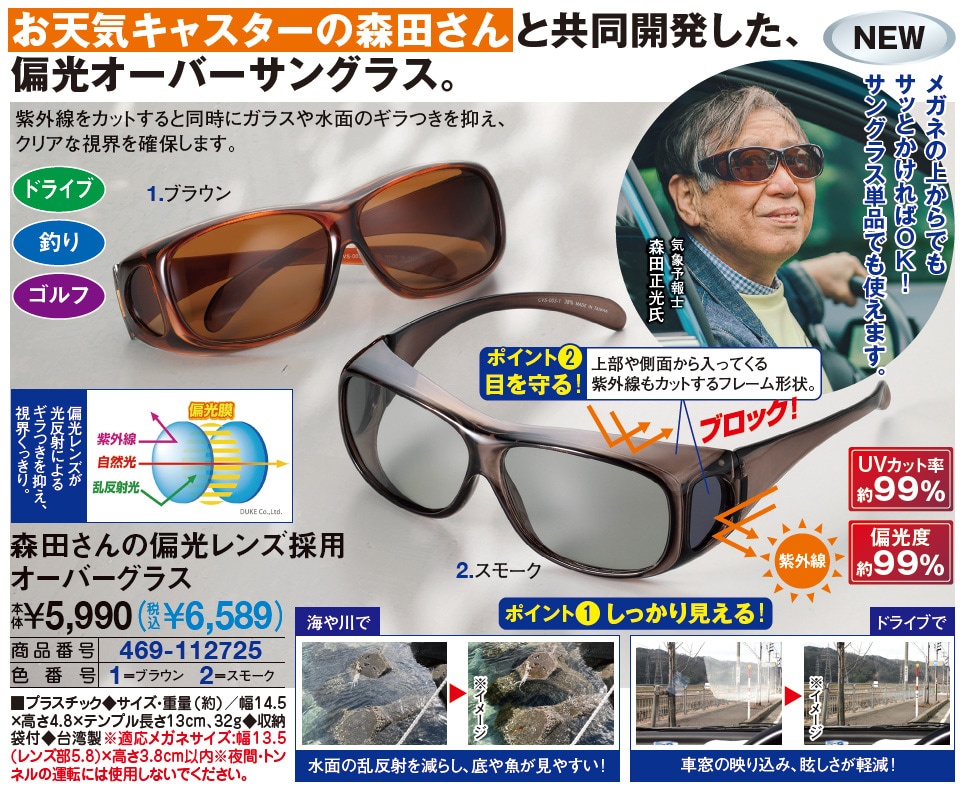 お天気キャスターの森田さんと共同開発した、偏光オーバーサングラス。