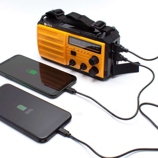 【サイズ(約)】幅17.5×奥行8×高さ9.8cm、520g 【材質】ABS樹脂・ポリカーボネート・シリコン・多結晶シリコン (ポリシリコン)・ナイロン 【電源】USB充電またはソーラー充電または手回し充電 【充電時間】USB充電:約8時間、ソーラー充電:約150時間で電池残量50%、手回し充電:約12時間で電池残量50% (1分あたり130~150回転) 【連続使用時間】ラジオ:約72時間、懐中電灯:約35時間(弱使用時)、読書灯:約72時間 (弱使用時) ●USBケーブル付 ●取扱説明書付 ●中国製