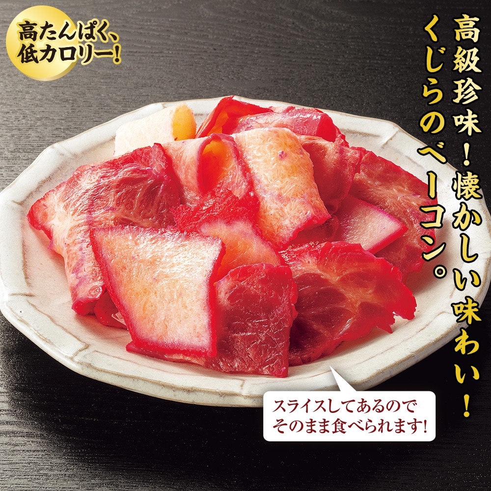 味わい深い高級珍味、くじらのベーコンの切り落としです。 食感のよさと素材のやわらかい甘み、昔懐かしい味をお楽しみください。 高たんぱく、低カロリー! スライスしてあるのでそのまま食べられます!