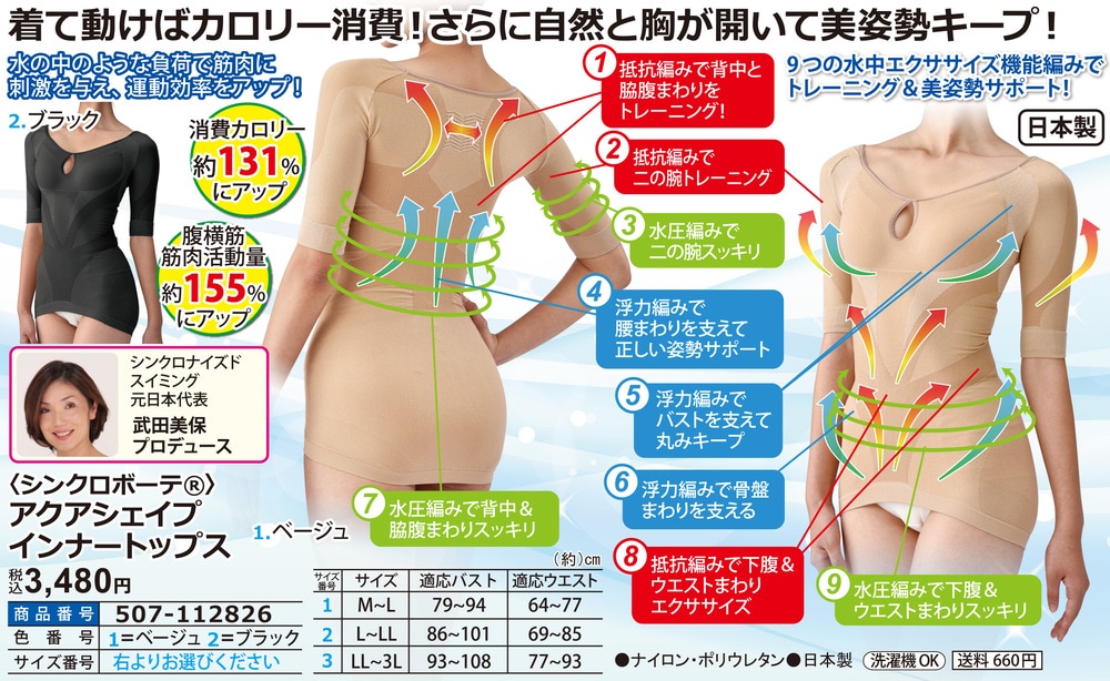 ●9つの水中エクササイズ機能編みでトレーニング&美姿勢サポート!