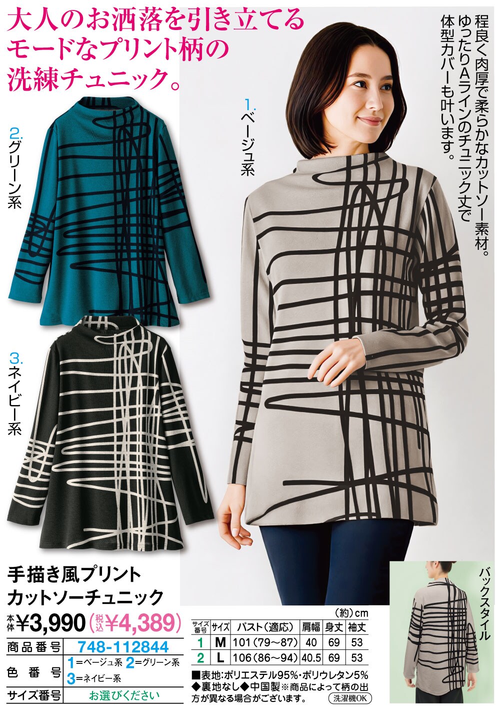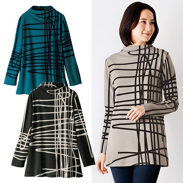 大人のお洒落を引き立てるモードなプリント柄の洗練チュニック!