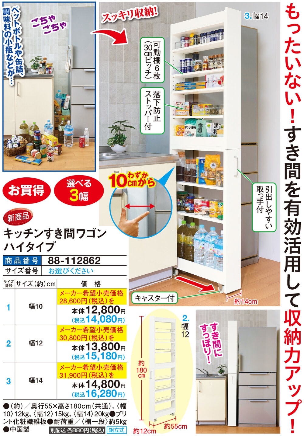 ●(約)/奥行55×高さ180cm(共通)、<幅10>12kg、<幅12>15kg、<幅14>20kg ●プリント化粧繊維板 ●耐荷重/<棚一段>約5kg ●中国製 ◆組立式