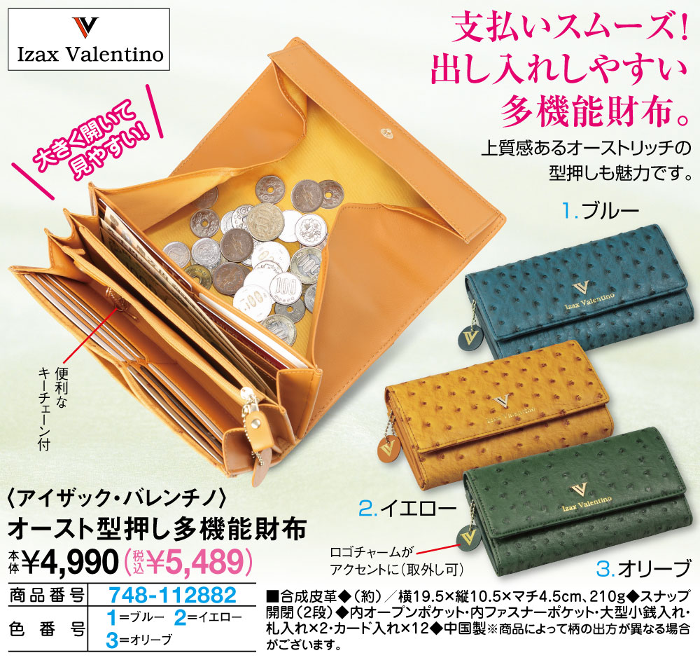 アイザック・バレンチノ Izax Valentino オースト型押し多機能財布