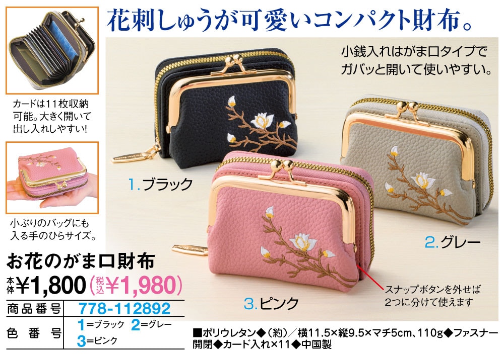 小銭入れはがま口タイプでガバッと開いて使いやすい。