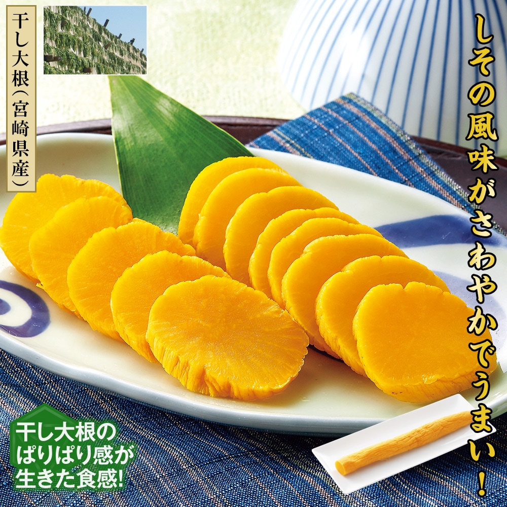 【干し大根(宮崎県産)】 干し大根のぱりぱり感が生きた食感! しその風味がさわやかでうまい! うまみが凝縮された宮崎県産の干し大根を昔ながらのしそ風味に仕上げました。ご飯に合う一品です。