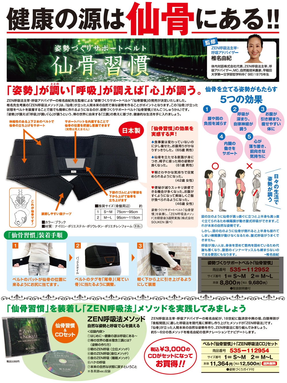 ■姿勢づくりガイド付 【仙骨習慣】 ■カラー:ブラック ■材質:ナイロン・ポリエステル・ポリウレタン・ポリエチレンフォーム ■日本製