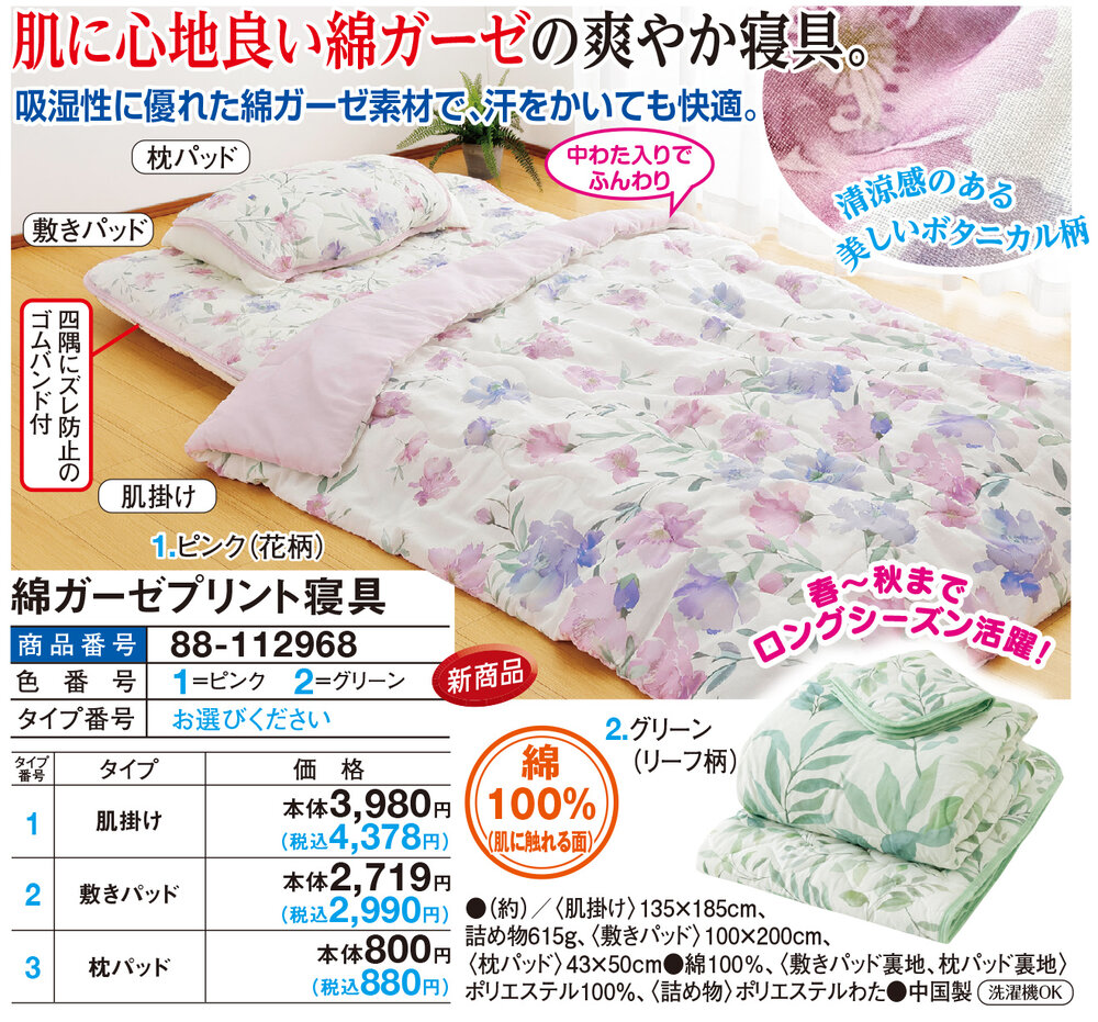 肌に心地良い綿ガーゼの爽やか寝具!
