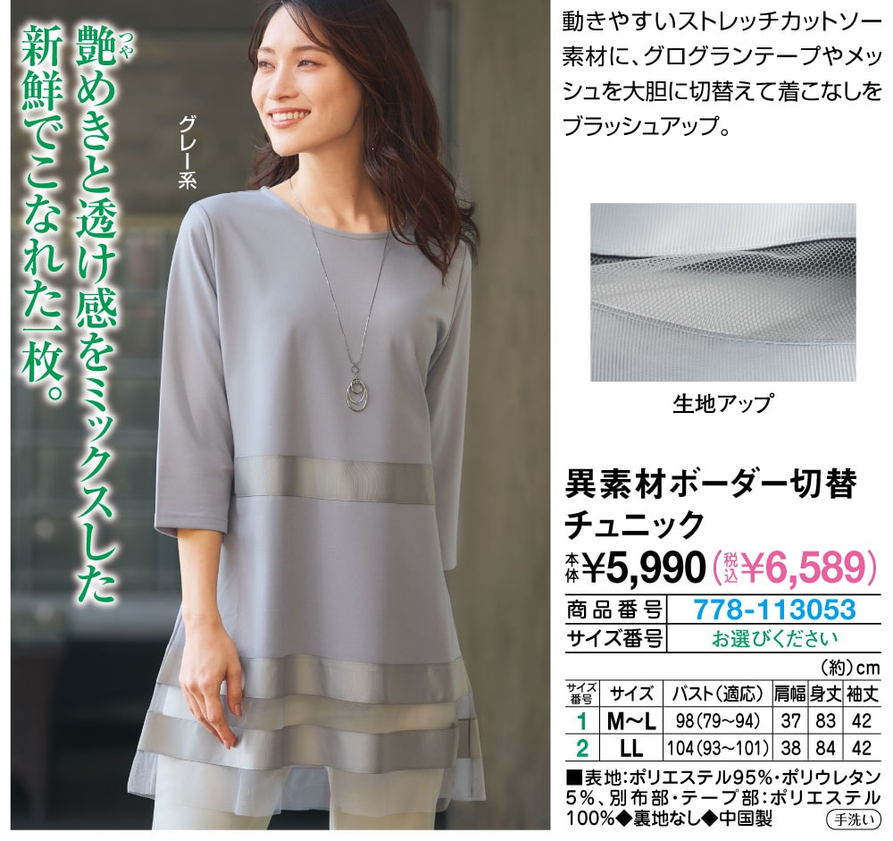異素材ボーダー切替チュニック