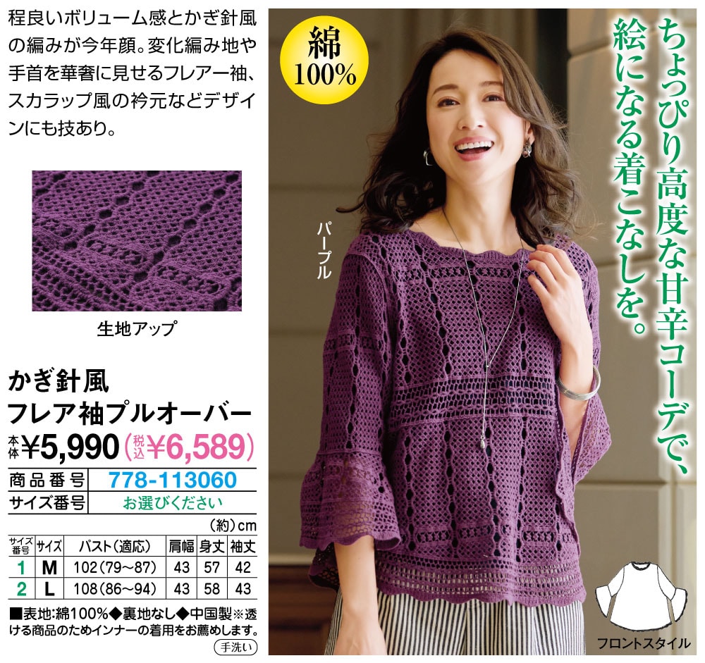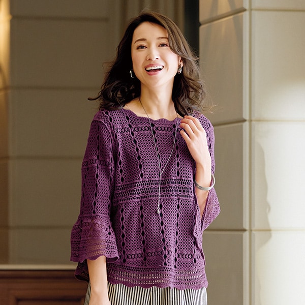 かぎ針風フレア袖プルオーバー
