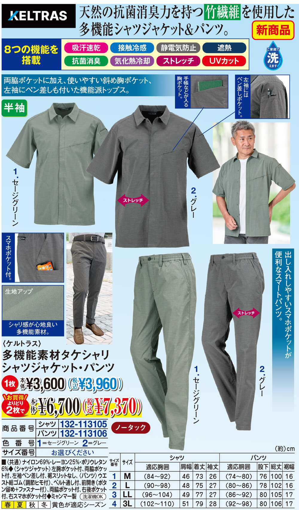 天然の抗菌消臭力を持つ竹繊維を使用した多機能シャツジャケット&パンツ!