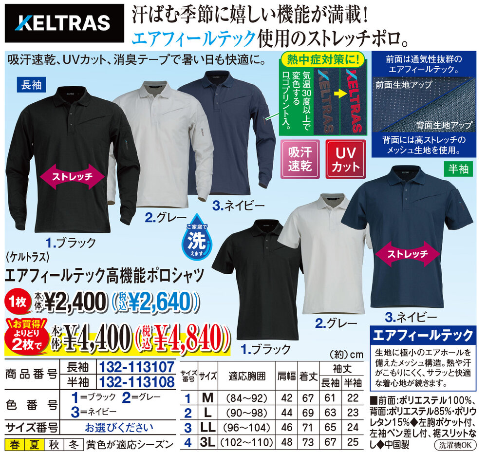 ケルトラス エアフィールテック高機能ポロシャツ