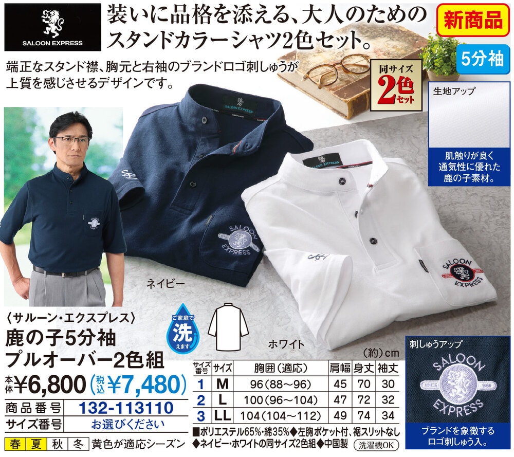 サルーン・エクスプレス 鹿の子 5分袖 プルオーバー 2色組