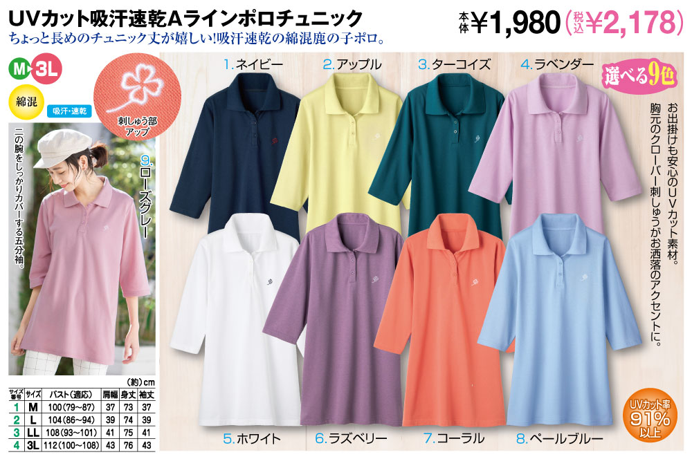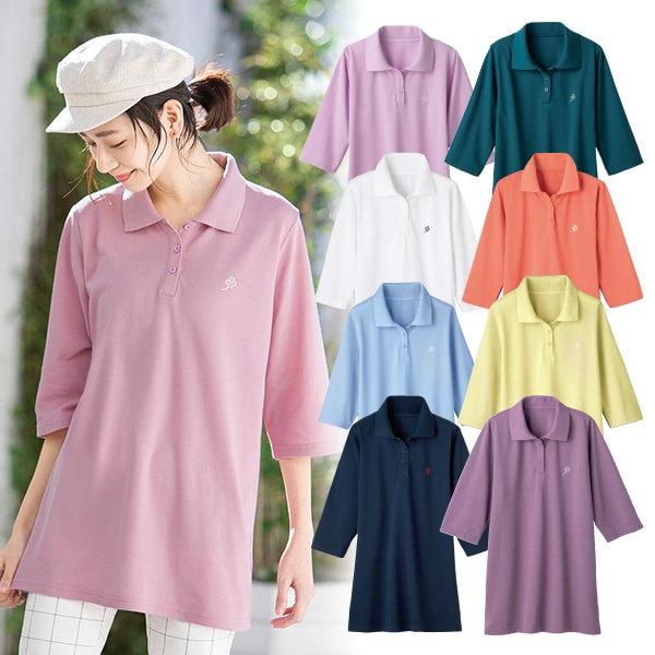 ちょっと長めのチュニック丈が嬉しい!吸汗速乾の綿混鹿の子ポロ!