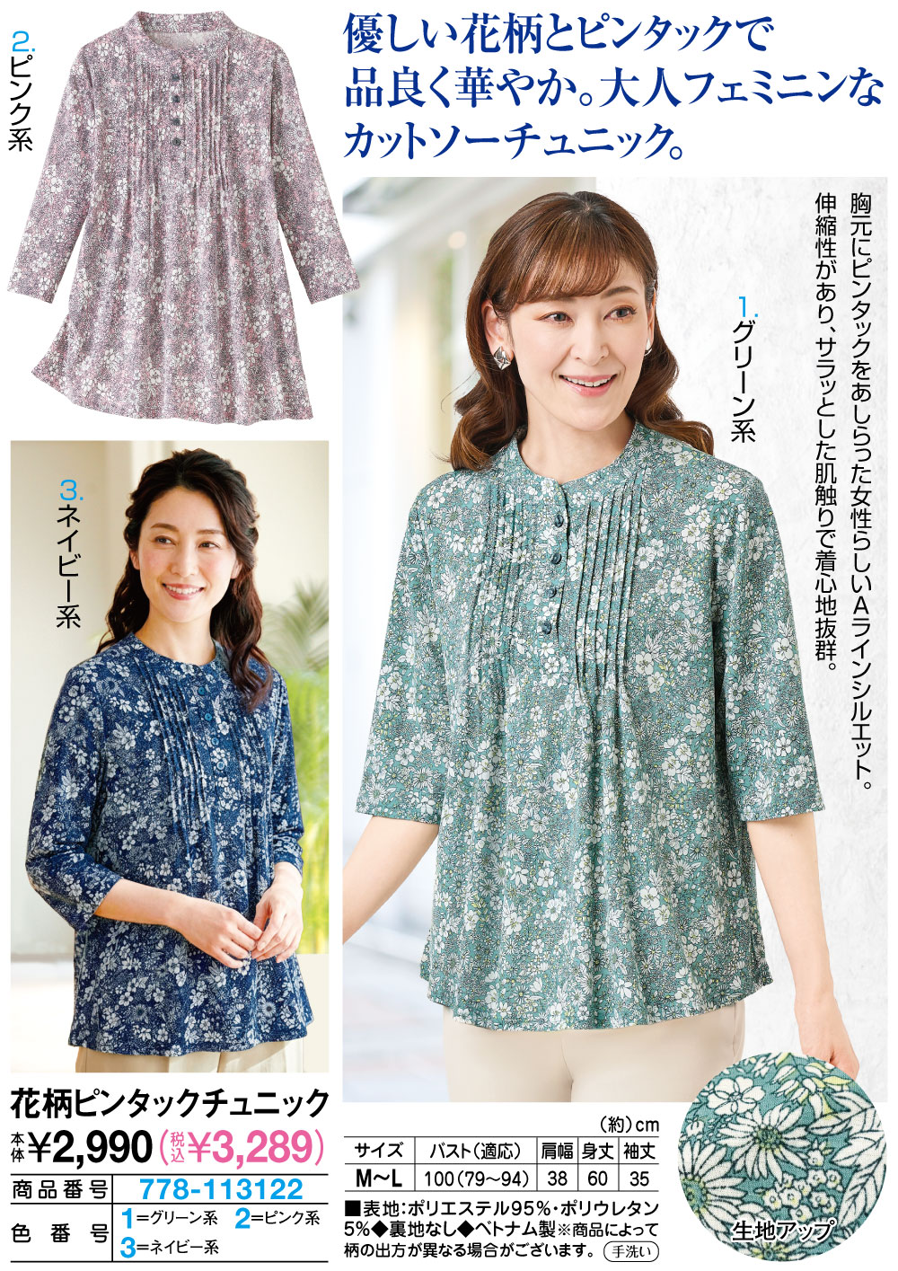 花柄とピンタックで華やか!フェミニンなカットソーチュニック!