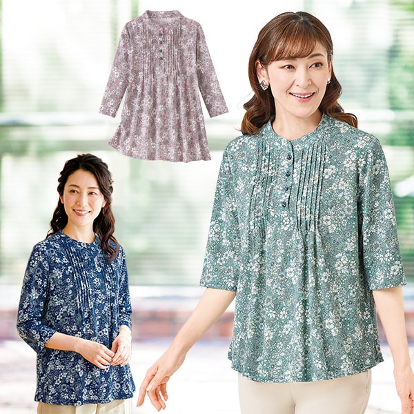 花柄ピンタックチュニック