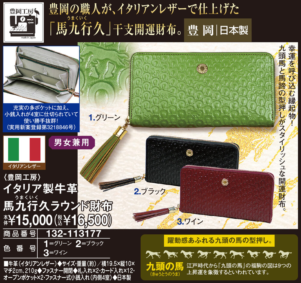 豊岡の職人が、イタリアンレザーで仕上げた「馬九行久」干支開運財布!