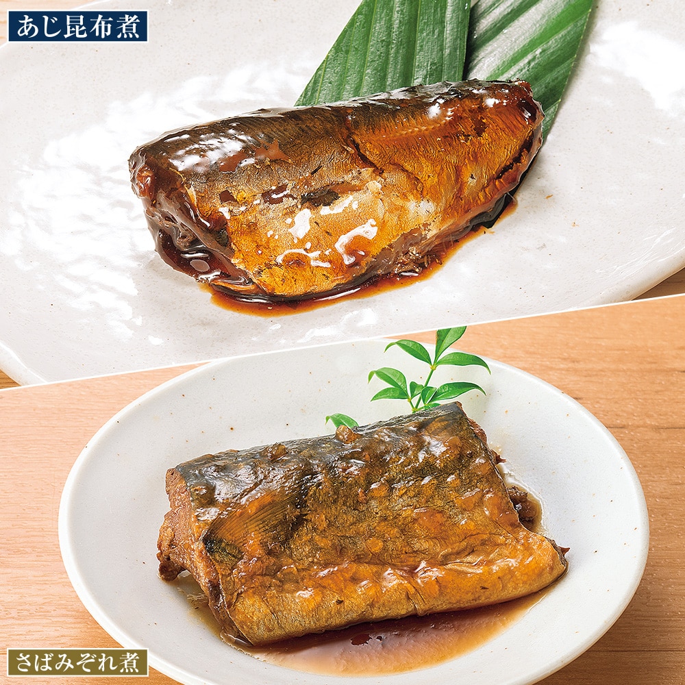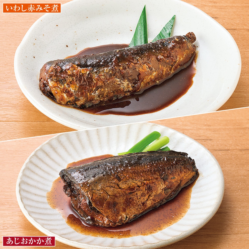 ●セット内容/<さば味噌煮(1切れ)>×2袋、<いわし梅煮(1尾)>×4袋、<あじ昆布煮(1尾)>×4袋、<さばみぞれ煮(1切れ)>×2袋、<いわし赤みそ煮(1尾)>×4袋、<あじおかか煮(1尾)>×4袋 ●原材料/<さば味噌煮>さば(国産)、砂糖、味噌、醤油、酵母エキス、みりん、魚醤調味料、でん粉、鰹節エキス、食塩、(一部に小麦・さば・大豆を含む)<いわし梅煮>いわし(国産)、砂糖、醤油、みりん、梅肉ペースト、でん粉、酵母エキス、食塩(一部に大豆・小麦を含む)<あじ昆布煮>あじ(国産)、昆布、砂糖、醤油、醸造調味料、酵母エキス、生姜、食塩/増粘剤(加工でん粉)、(一部に小麦・大豆を含む) ●賞味期限/製造日から常温5カ月 ●加工地/千葉 ●特定原材料等/<さば味噌煮>小麦・さば・大豆<いわし梅煮>小麦・大豆<あじ昆布煮>小麦・大豆<さばみぞれ煮>小麦・さば・大豆<いわし赤みそ煮>小麦・大豆<あじおかか煮>小麦・大豆