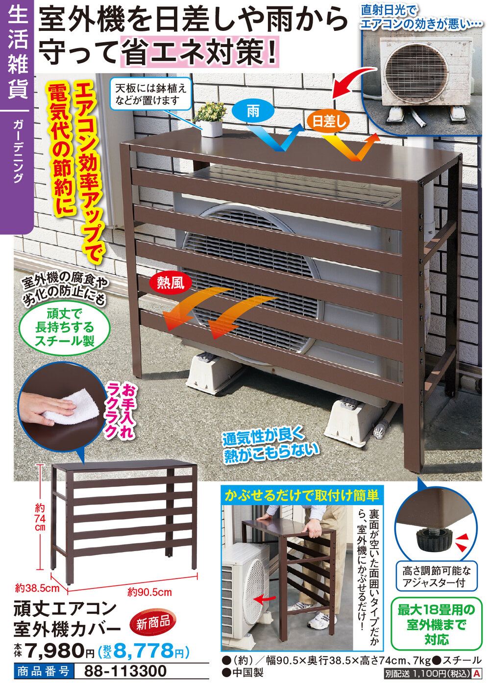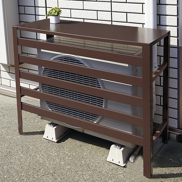 室外機を日差しや雨から守って省エネ対策! \直射日光でエアコンの効きが悪い・・・/ ●通気性が良く熱がこもらない ●エアコン効率アップで電気代の節約に \室外機の腐食や劣化の防止にも/ 頑丈で長持ちするスチール製 お手入れラクラク \かぶせるだけで取付け簡単/ 裏面が空いた面囲いタイプだから、室外機にかぶせるだけ! 天板には鉢植えなどが置けます 高さ調節可能なアジャスター付 ●最大18畳用の室外機まで対応