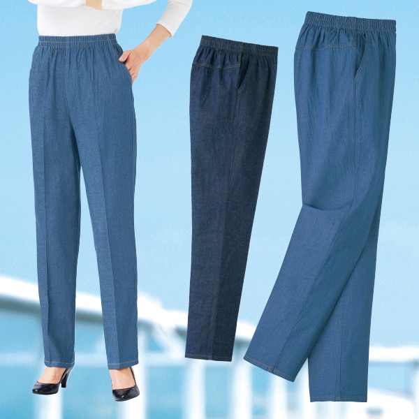 ヨコ伸びの柔らかデニム素材を使った気軽にはける軽快パンツ!