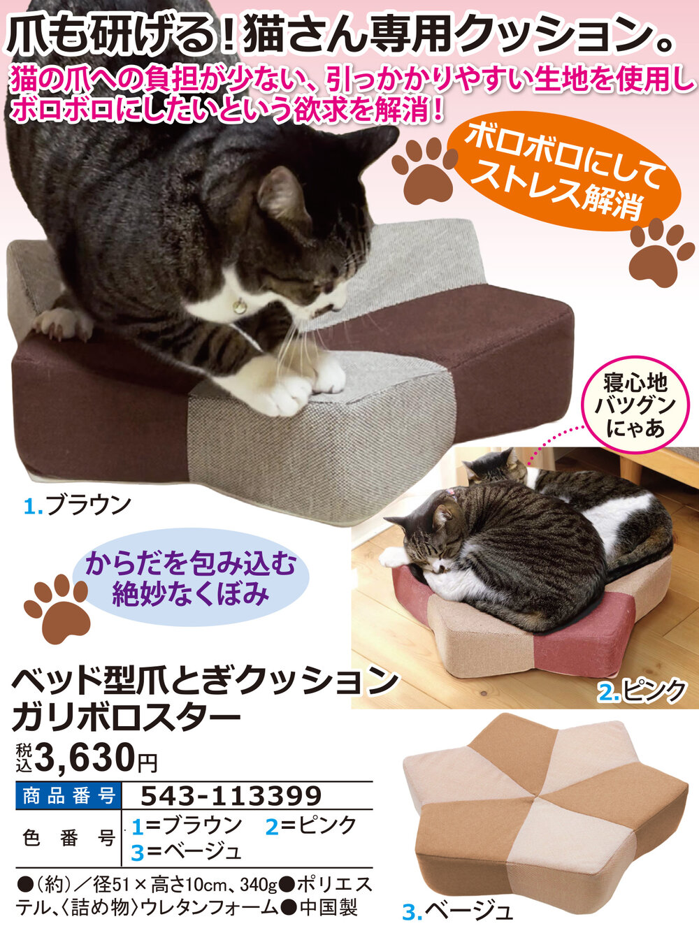 ●猫の爪への負担が少ない、引っかかりやすい生地を使用しボロボロにしたいという欲求を解消! ●ボロボロにしてストレス解消 ●からだを包み込む絶妙なくぼみ
