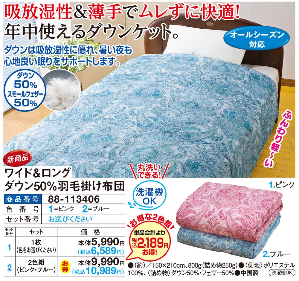 ワイド&ロングダウン50%羽毛掛け布団