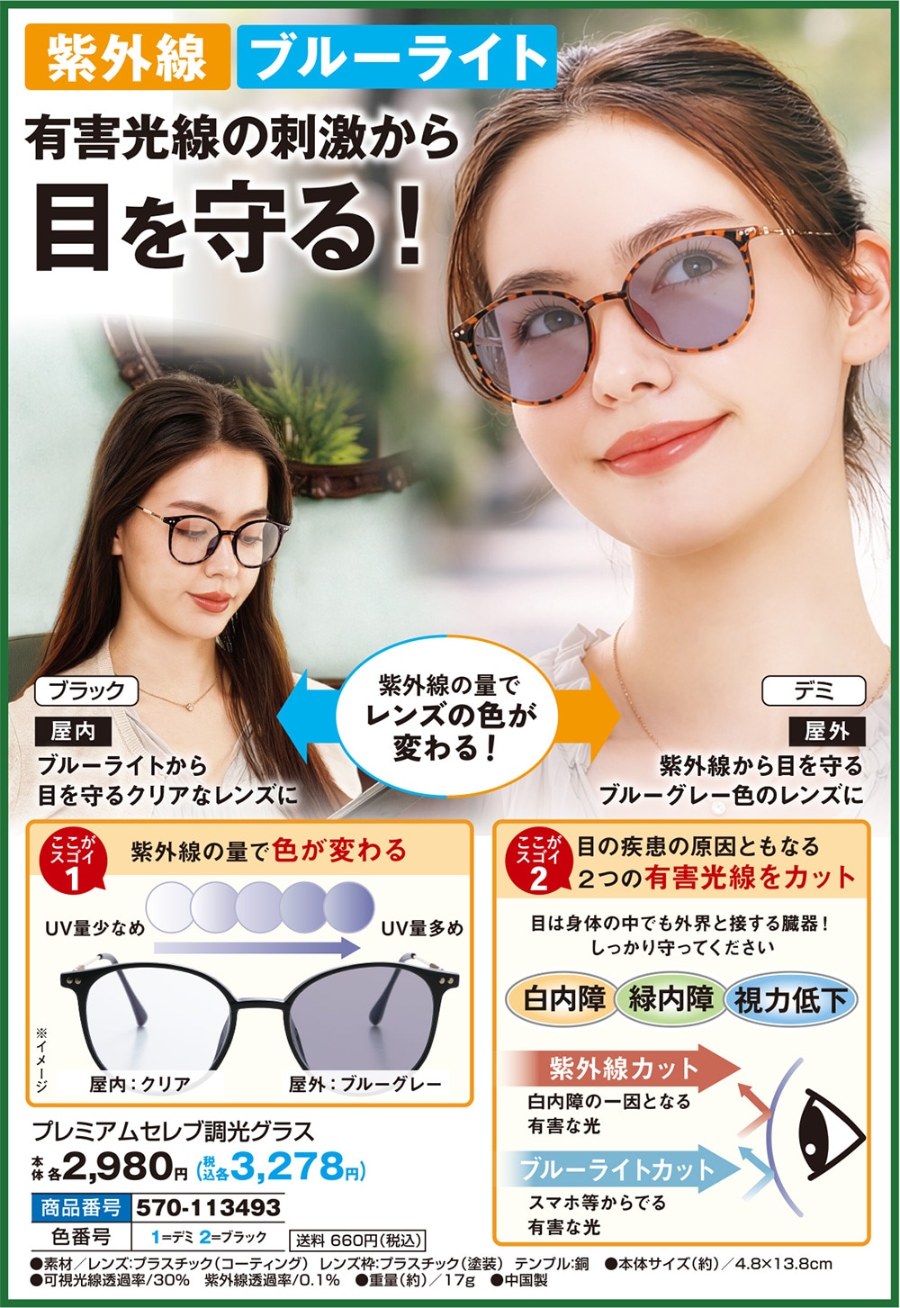 ●紫外線の量に合わせてレンズの色が自動で変わる調光機能